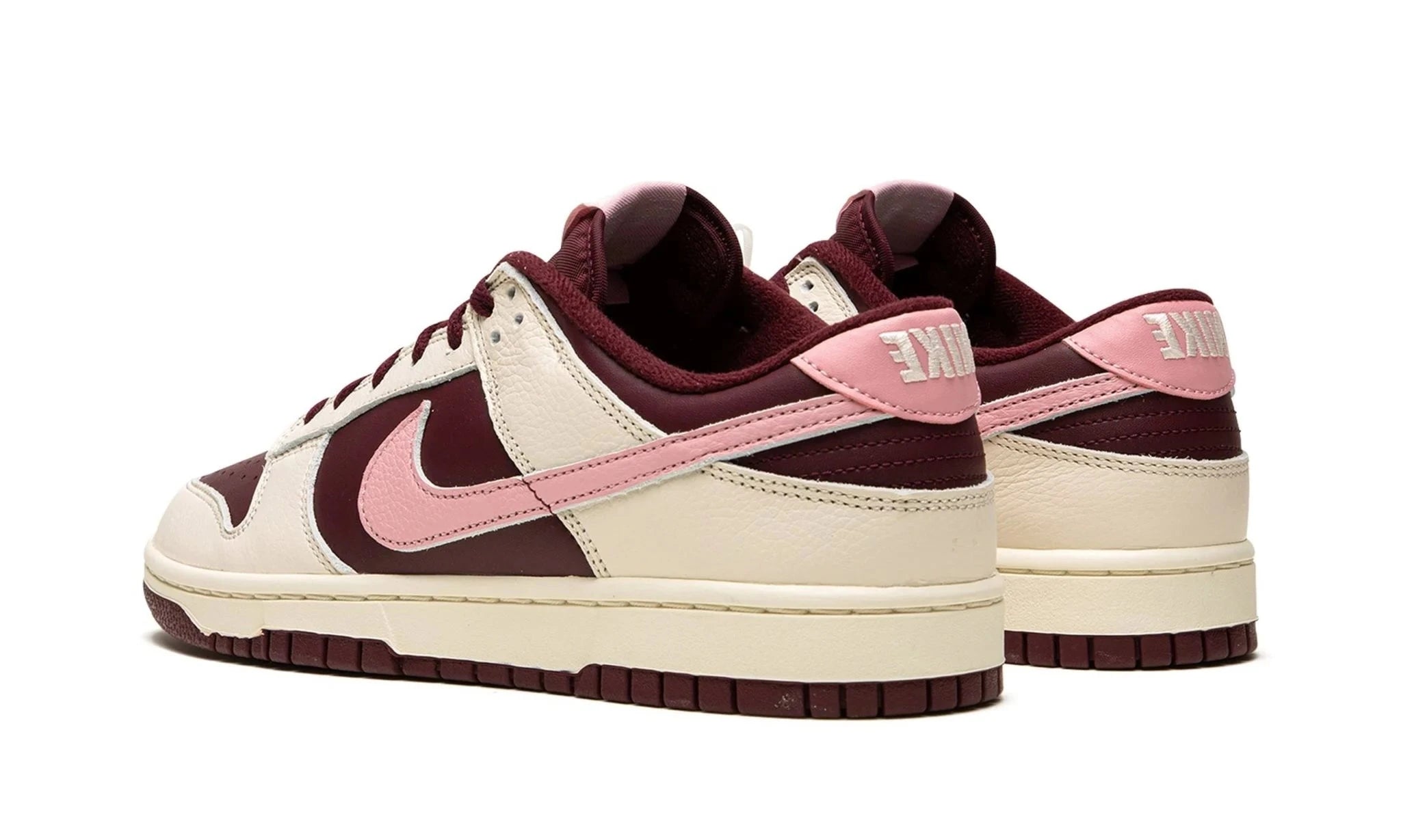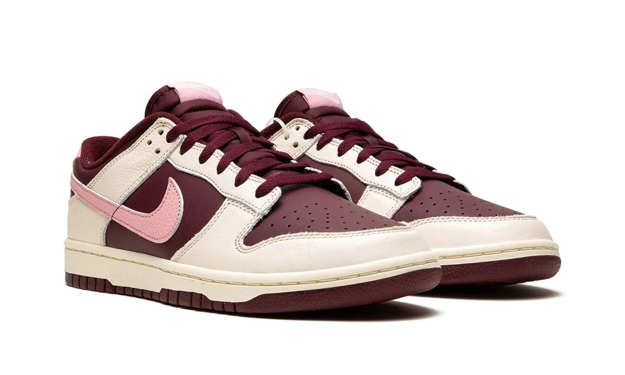- Romantic Colorway: The "Valentine's Day 2023" edition of the Dunk Low Retro features a delicate mix of colors that reflect the theme of love. Soft tones of Sail, Night Maroon, and Pale Ivory create a balanced, romantic palette that gives the sneaker a refined and understated elegance. The deep Night Maroon overlays complement the light Pale Ivory leather base, giving the sneaker a premium and textured appearance.