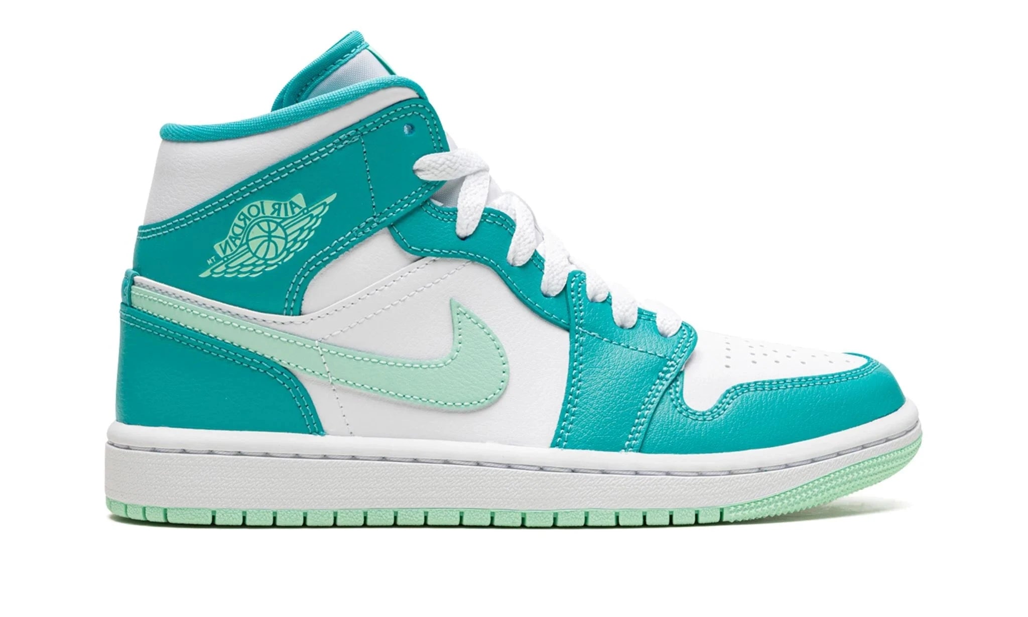 - Rubber Outsole: The rubber outsole is designed with a pivot-circle tread pattern, offering excellent grip and traction on various surfaces. This feature ensures that the Air Jordan 1 Mid WMNS "Washed Teal" performs well in terms of both style and function.