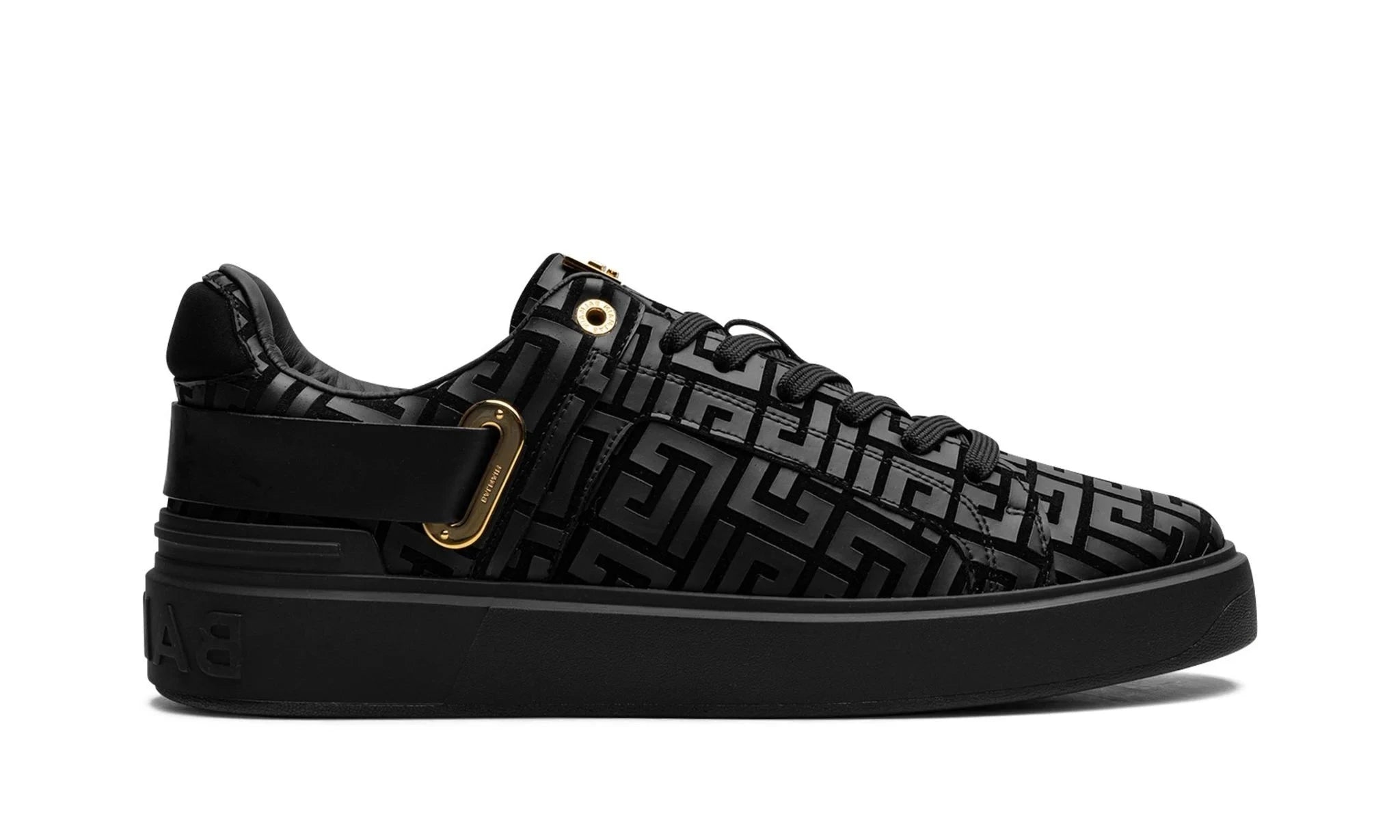 Upper Construction: Made from premium leather, the upper is durable yet soft, providing a comfortable fit while maintaining its structure over time. The highlight of the design is the embossed Balmain monogram pattern, adding a subtle touch of luxury and texture to the clean silhouette.