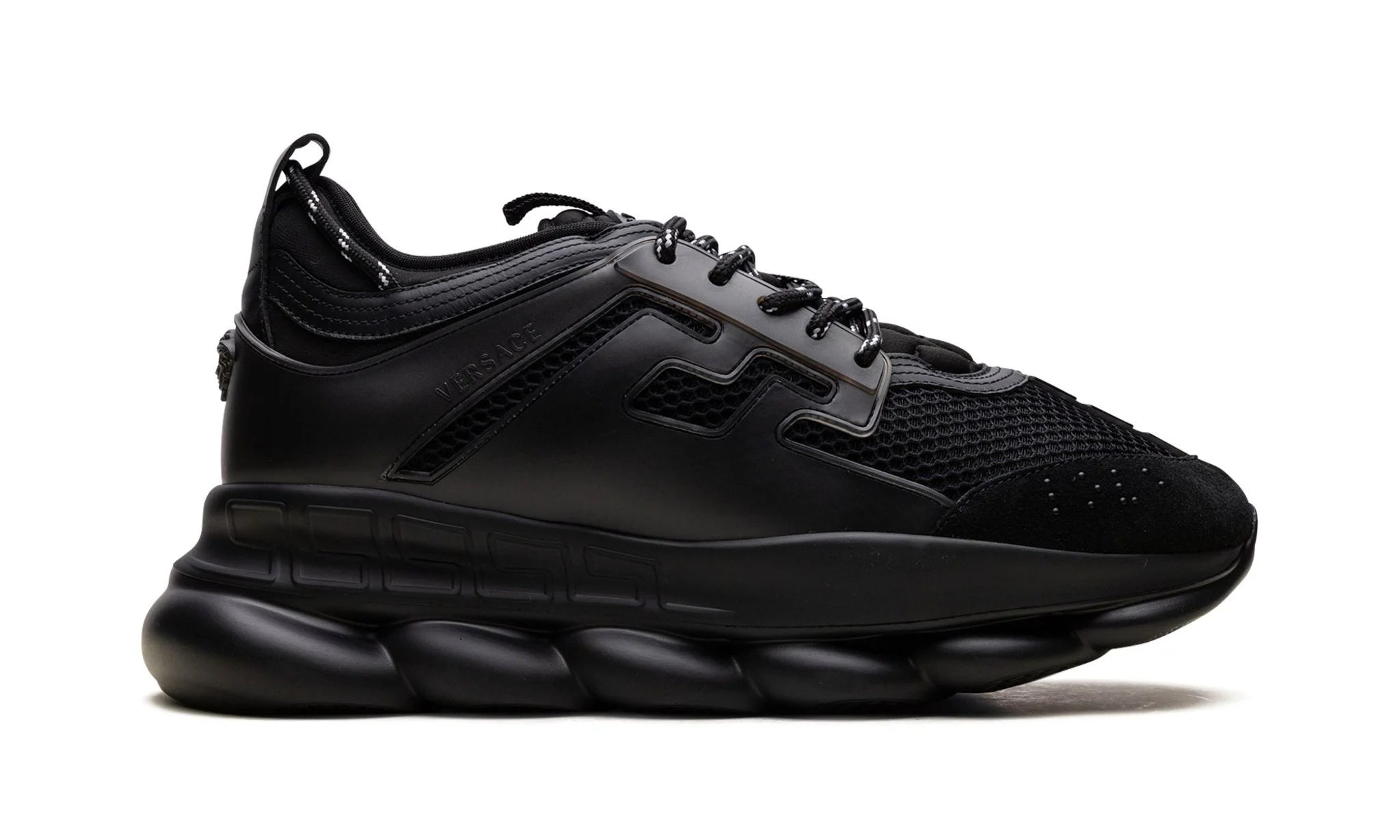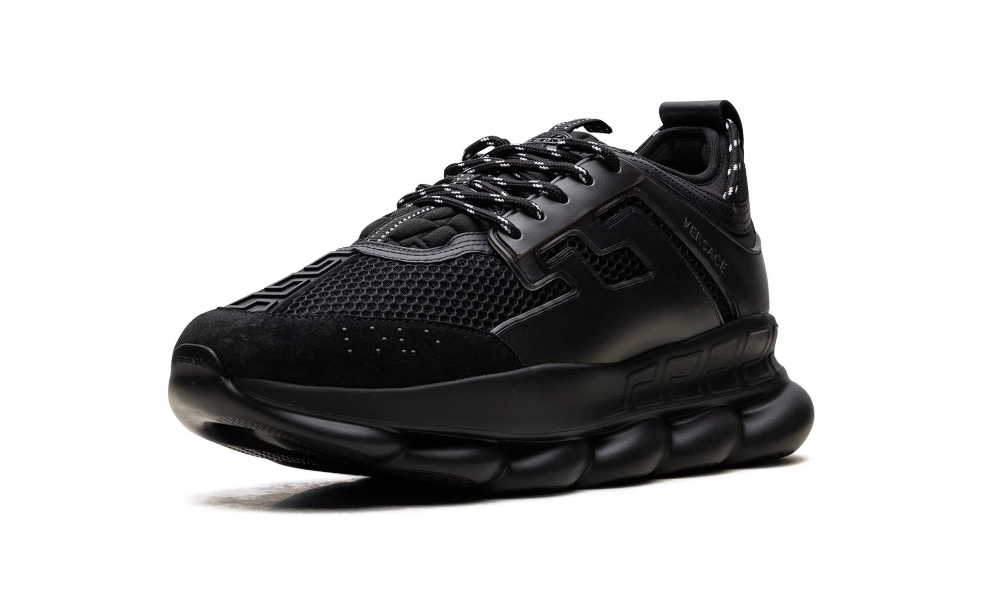 The Versace Chain Reaction "Triple Black" sneaker is a statement piece that combines Versace’s luxury craftsmanship with bold, streetwear-inspired design. As part of the iconic Chain Reaction collection, the "Triple Black" edition emphasizes minimalism with an all-black color scheme, while maintaining the signature design elements that have made this sneaker line a standout.