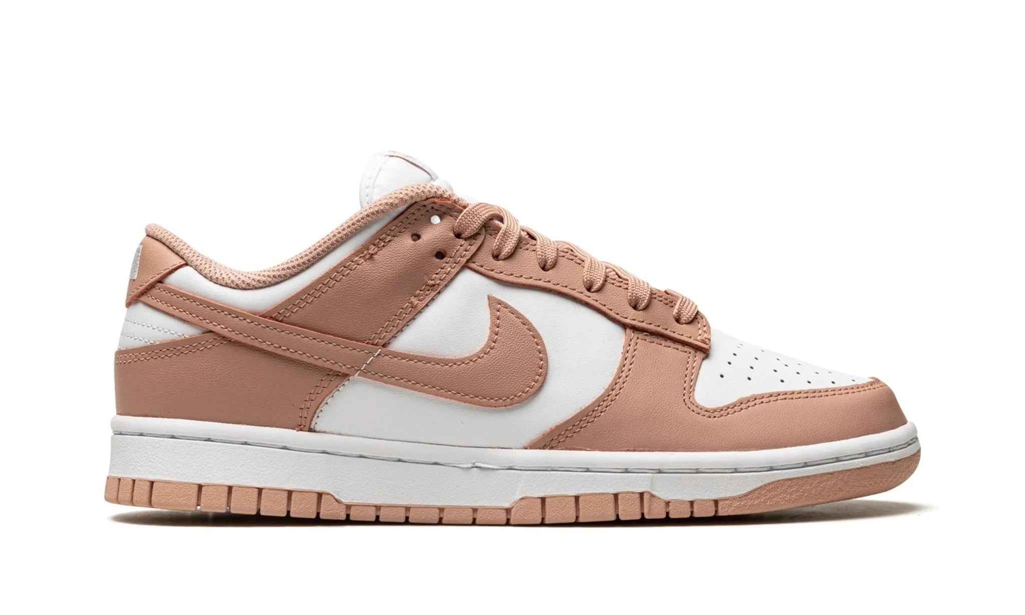 - Classic Dunk Silhouette: Staying true to the Dunk heritage, the Dunk Low WMNS features a classic silhouette with a perforated toe box for breathability and a padded collar for added comfort. The recognizable Swoosh logo in white stands out against the rose backdrop, emphasizing the sneaker's timeless appeal.