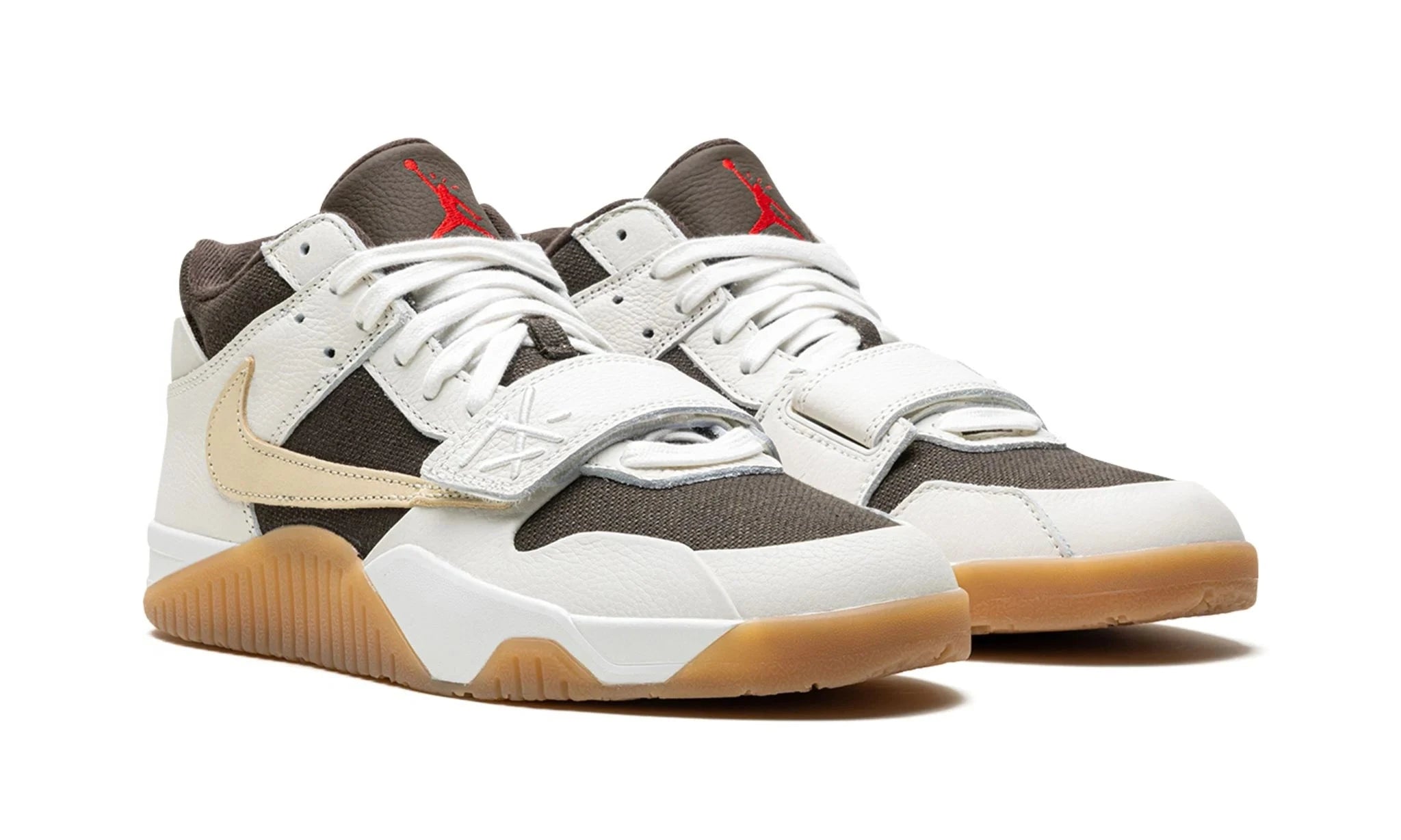 - Jordan Jumpman Branding: The iconic Jumpman logo is prominently displayed on the tongue and heel, maintaining the classic Jordan aesthetic while blending with Travis Scott's signature style.