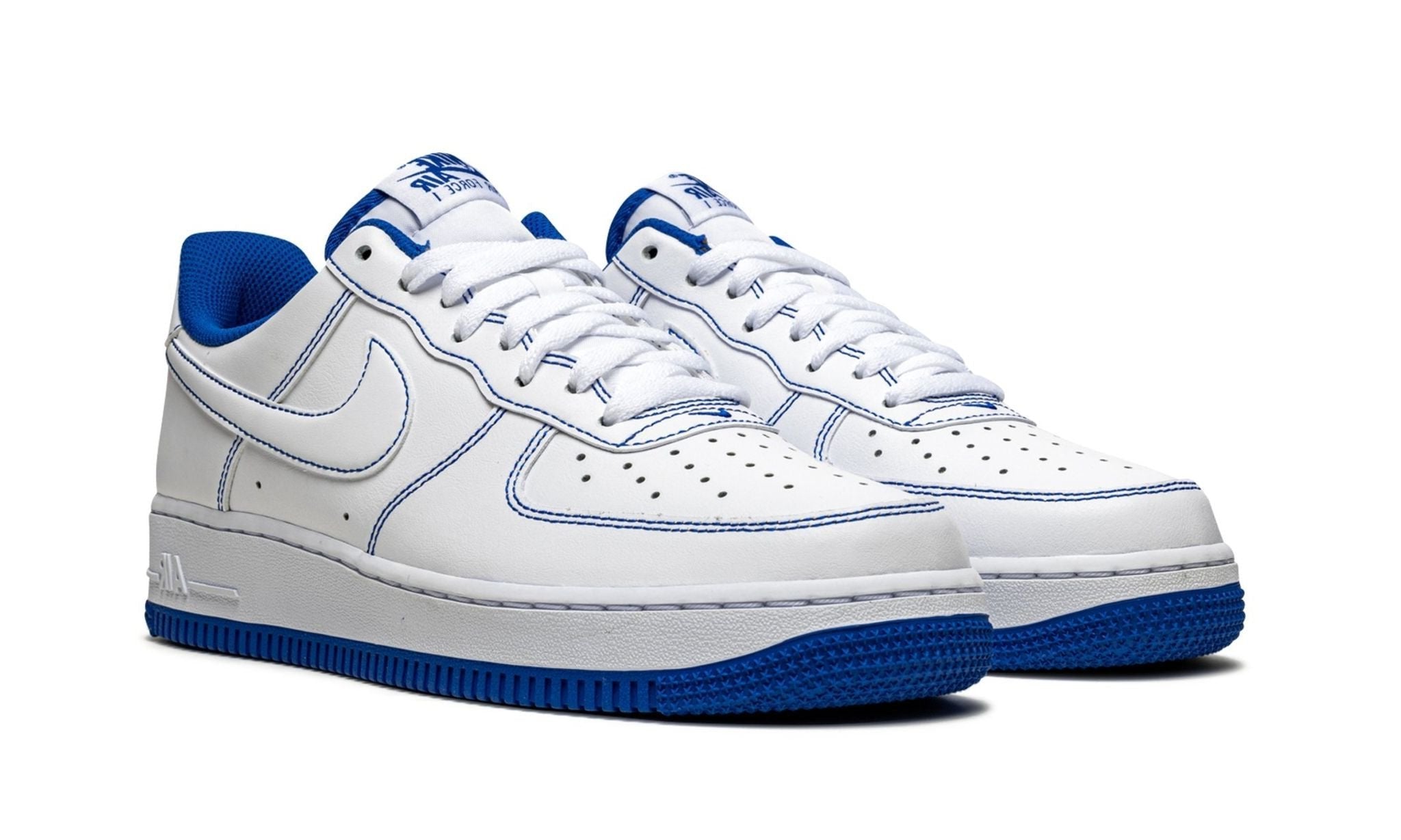 The Nike Air Force 1 Low "Contrast Stitch/Game Royal" combines the timeless appeal of the Air Force 1 with modern design elements. The Air Force 1, originally released in 1982 and designed by Bruce Kilgore, has become an enduring icon in both sports and streetwear culture. This particular edition updates the classic silhouette with a contemporary twist through the use of contrast stitching and vibrant colors.