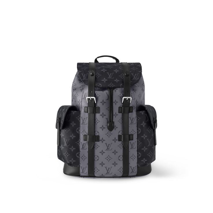 Crafted in Monogram Eclipse Reverse canvas, the Christopher PM offers a contemporary twist on Louis Vuitton's classic monogram. The contrasting tones of black and grey create a bold yet versatile look, while silver-tone hardware and smooth leather trim add a polished finish. The design balances sophistication with a hint of street style, making it suitable for various occasions.