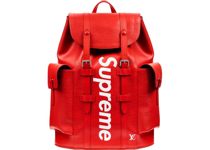 Crafted in Louis Vuitton's premium Epi leather, this backpack comes in a striking red, a color signature to Supreme’s branding. The iconic white Supreme logo spans the front, creating a powerful visual impact that immediately signifies its high-fashion roots. The Epi leather texture provides a refined look while adding durability to withstand daily wear.