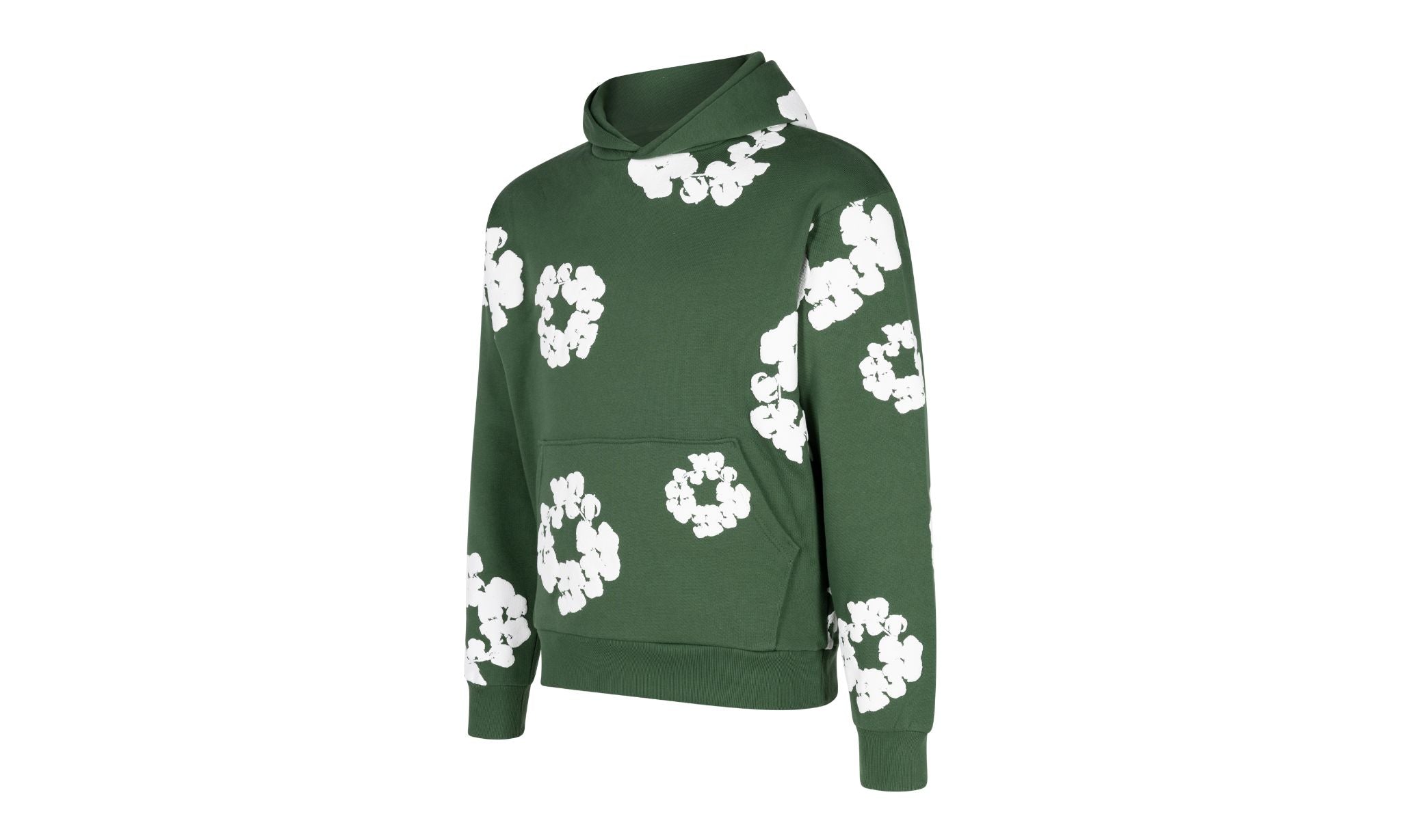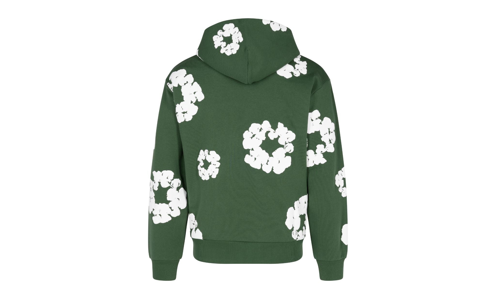 The rich green hue of this sweatshirt adds a refreshing pop of color, making it an eye-catching choice for any outfit. The distinctive Cotton Wreath graphic featured prominently on the front pays homage to heritage and nature, showcasing intricate detailing that reflects Denim Tears' ethos of celebrating identity and craftsmanship. This thoughtful design element transforms the sweatshirt into a wearable piece of art.