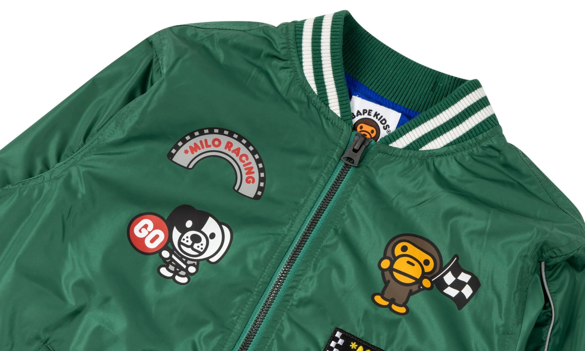 A BATHING APE® Baby Milo Racing Team Emblem Print Jacket "Green"