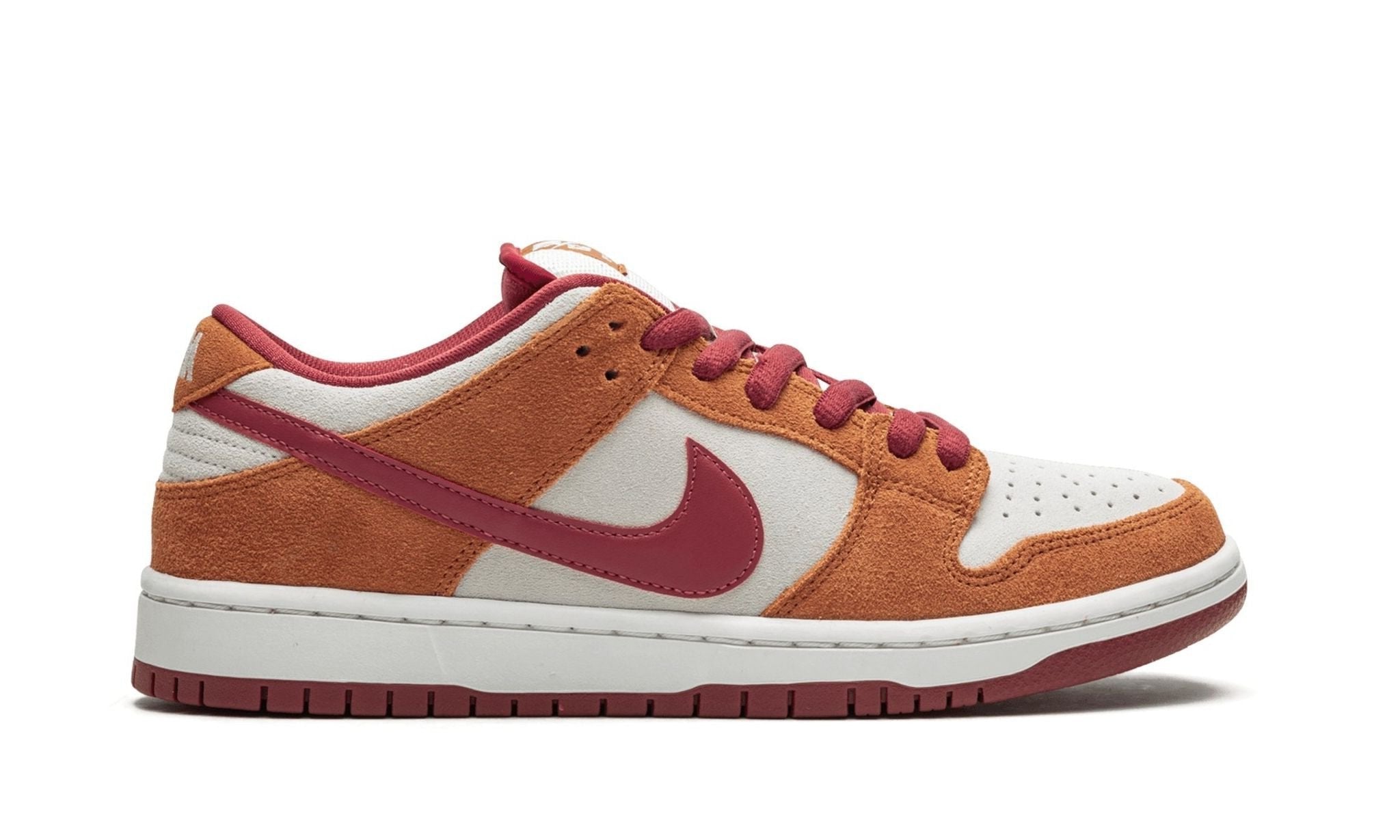 - Premium Suede Construction: The upper of the Dark Russet Dunk SB is crafted from soft and durable suede, adding a premium feel to the overall design. The rich suede overlays in Dark Russet and Deep Orange create texture and depth, making the shoe as stylish as it is durable for skateboarding.